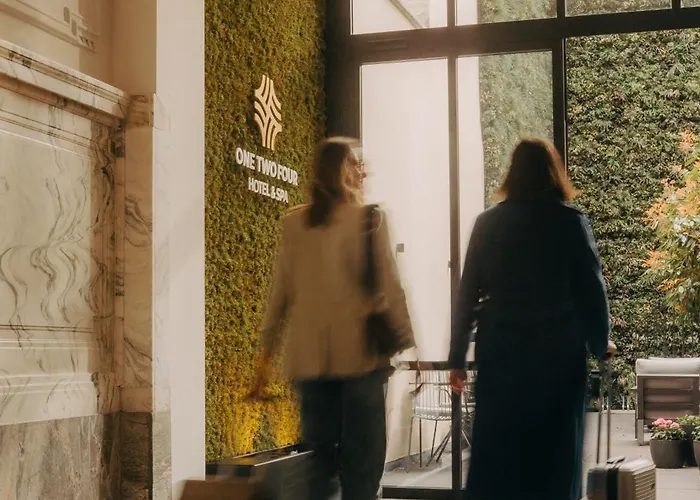 One Two Four - Hotel & Spa oferuje 15 pokojów wyposażone w minibar i urządzenie do parzenia kawy/herbaty oraz takie nowoczesne udogodnienia jak telewizja satelitarna. W łazienkach pokojów są kabina prysznicowa walk-in i oddzielna toaleta oraz takie udogodnienia jak suszarka do włosów i ręczniki.